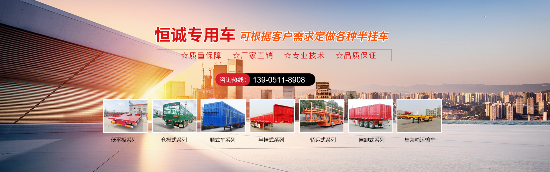 現(xiàn)有半掛車生產(chǎn)線,自卸車生產(chǎn)線,低平板生產(chǎn)線,轎運車生產(chǎn)線,垃圾車,洗掃車,清洗車,超大件運輸及特種車輛等100多種產(chǎn)品,可按需定制化生產(chǎn),滿足個性化需求。全方位服務以及售后優(yōu)勢